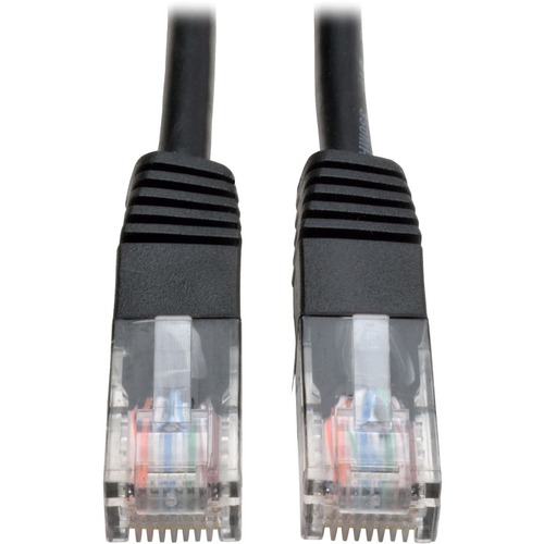 Tripp Lite's 15-ft. Black category 5e (Cat5e) patch cable has 2 standard RJ45 molded male connectors featuring integral strain relief. The cable is manufactured from PVC 4-pair stranded UTP and is rated for 350MHz/1Gbps communication. All cables are offered in a variety of lengths and colors for all category 5 (Cat5) and 5e cabling needs. Snagless category 5e patch cables are also available (N001-Series).