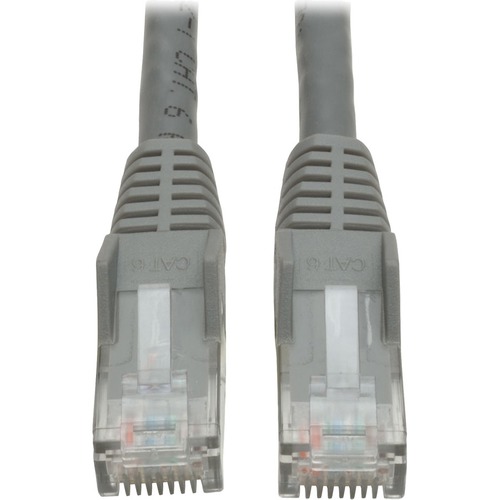 The N201-035-GY Cat6 Gigabit Snagless Molded UTP Patch Cable (M/M) is recommended for distributing data, voice and video through computers, network adapters, routers, servers, modems, hubs and switches in high-density data centers. Designed for fast transmission and excellent signal quality, this cable ensures peak performance throughout your local area network (LAN). It reduces impedance and structural return loss compared to standard 100 MHz wire.